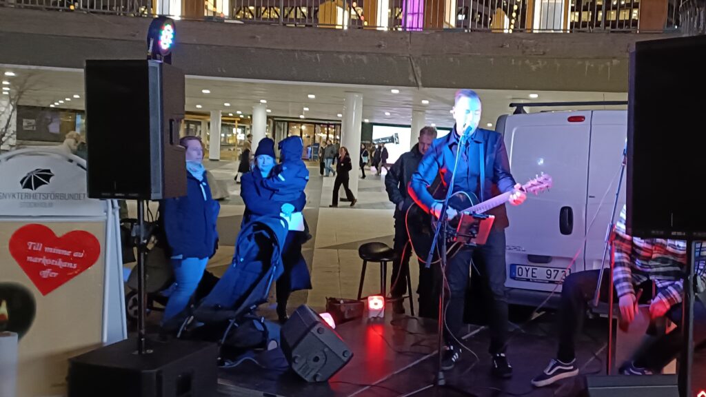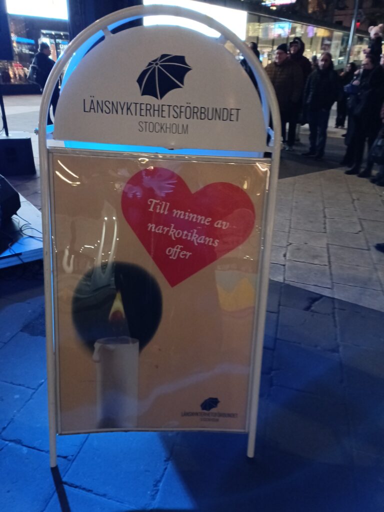 Den 1 november, som är minnesdag för narkotikans offer, var det ljusmanifestation på Sergels torg. Medverkande var Sara Woldu från KRIS Stockholm, prästen Johan Norén från S:t Clara, artisten Anders Eriksson och författaren Victor Grewe.