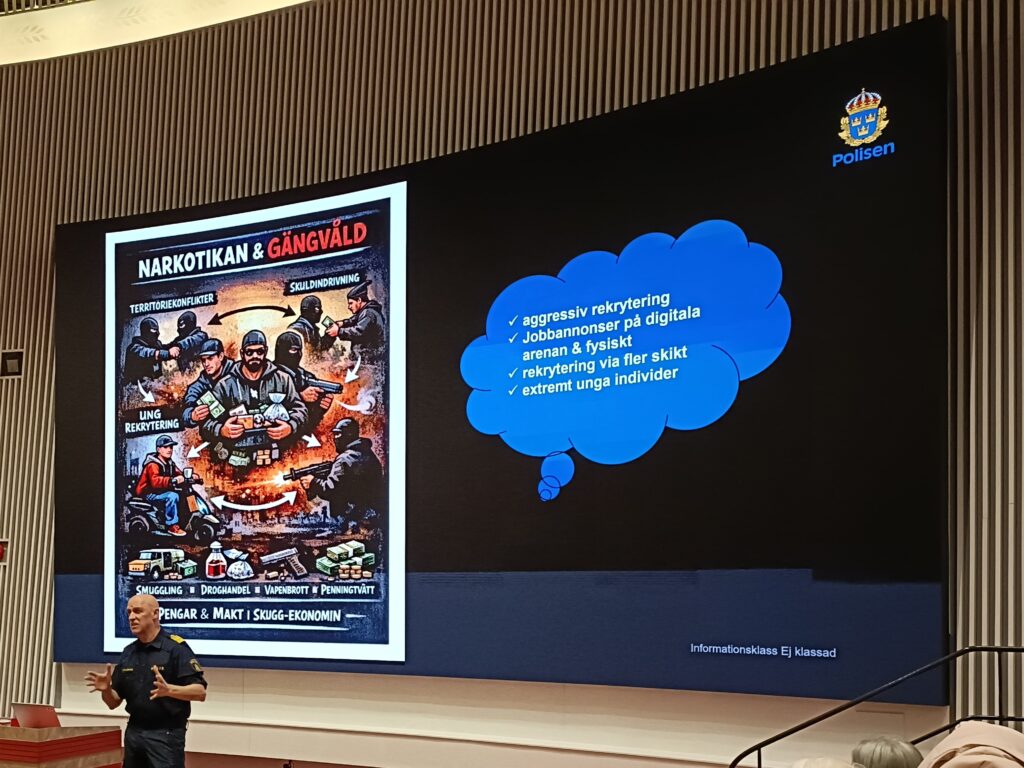 Dagen innehöll intressanta och relevanta föreläsningar med en tydlig röd tråd och avslutades med ett panelsamtal. Föreläsarna tog upp allt från hjärnans betydelse vid våld (U-fold), unga och våld i nära relationer (NCK), droger hos mordoffer och förövare (Rättsmedicinalverket), narkotikan och gängvåld (Polisen), skolan som skyddsfaktor (Elevhälsan), och ungas existentiella behov (CRS).